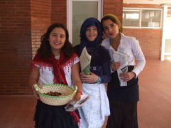 Els nens i les nenes de 6è vestits de castanyers i castanyeres ens visiten a totes les aules i són els encarregats de repartir les castanyes entre tots.